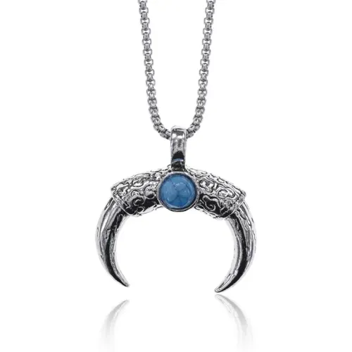 Металлический амулет-подвеска в виде рога с цепочкой и вставкой из синтетической бирюзы.