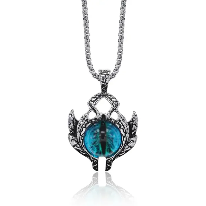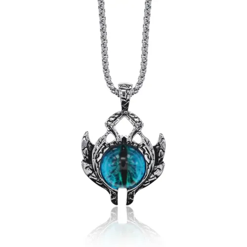 Амулет Глаз на цепочке — сувенирный аксессуар из металла с покрытием под серебро и стеклянной вставкой.