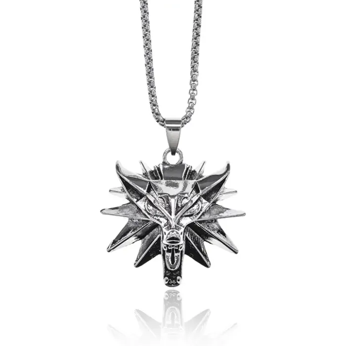 Амулет в виде волка на цепочке. Металл с покрытием под серебро.