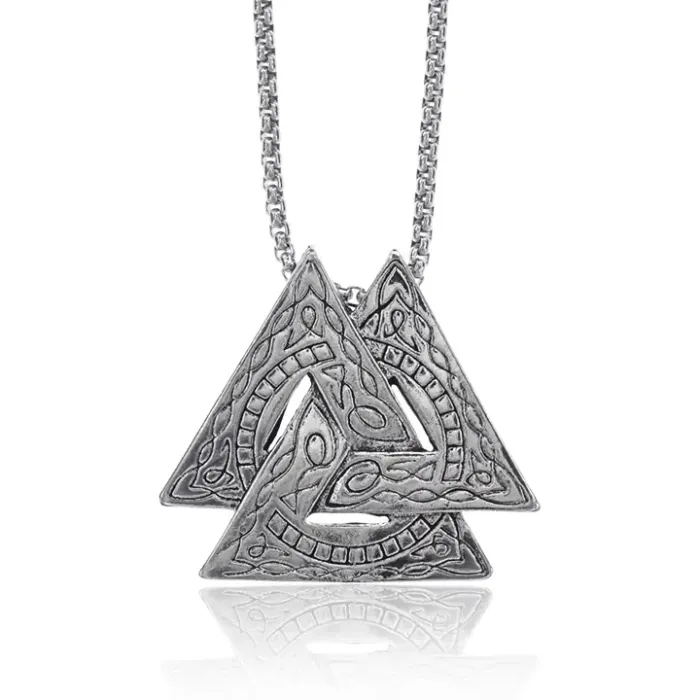 Амулет Валькнут — сувенирный символ древнескандинавской культуры. Изготовлен из металла с покрытием под серебро, на цепочке.