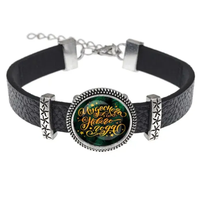 Кожаный браслет Чудесного Нового года — это стильный аксессуар, который станет идеальным подарком для близких. С изображением диаметром 18 мм под выпуклой стеклянной линзой, он привносит в образ нотки волшебства и праздника. Регулируемый размер позволяет носить его на любой руке, а качественные материалы — кожа, металл и стекло — гарантируют долговечность и комфорт. Упакован в прозрачный пакет, что делает его готовым к подарку или приятному сюрпризу. Этот браслет традиционно ассоциируется с новогодними праздниками и создаёт атмосферу уюта и радости.