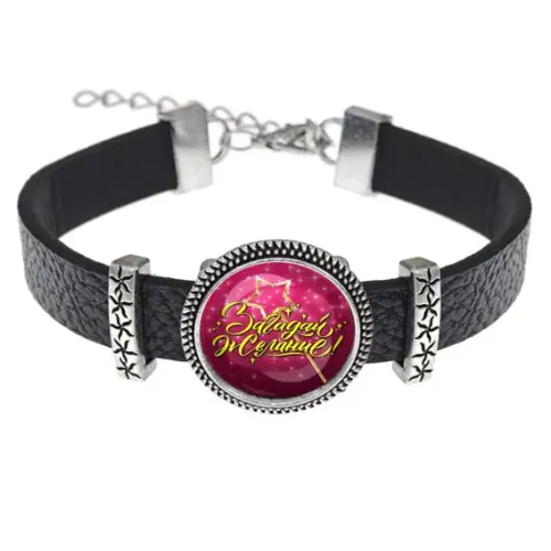 Кожаный браслет "Загадай желание!" — это стильный аксессуар, который станет не только украшением, но и символом надежды и мечты. Изображение диаметром 18 мм под выпуклой стеклянной линзой привлекает внимание и создает уникальный эффект. Регулируемый размер позволяет носить браслет на любой руке, обеспечивая комфорт в использовании. Изготовленный из качественных материалов: кожи, металла и стекла, он сочетает в себе прочность и элегантность. Упаковка выполнена в виде прозрачного пакета, что делает его отличным подарком для близких.