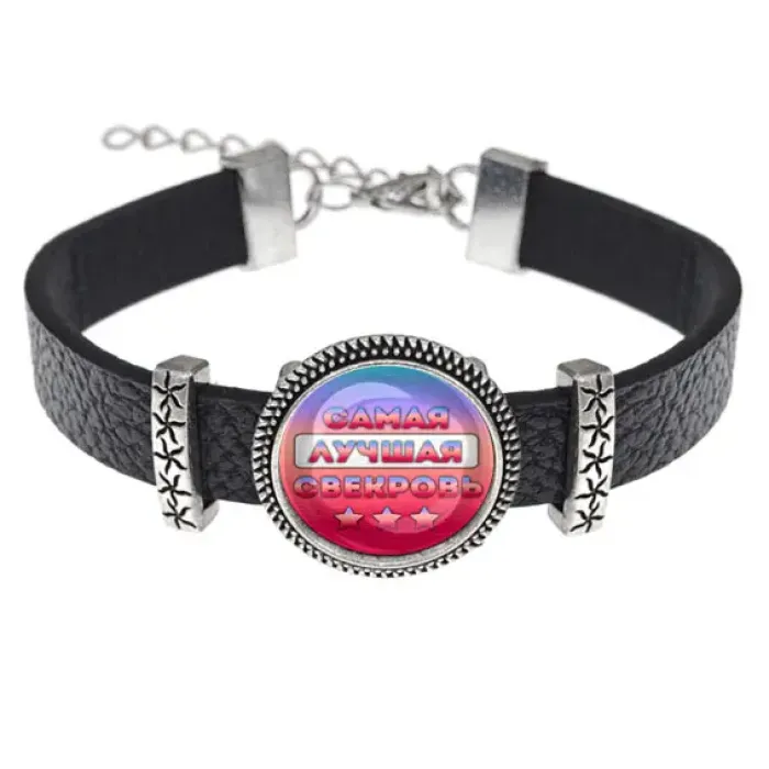 Кожаный браслет с трогательным изображением, символизирующим любовь и уважение к свекрови. Этот стильный аксессуар станет прекрасным подарком для важного человека в жизни. Основные особенности: