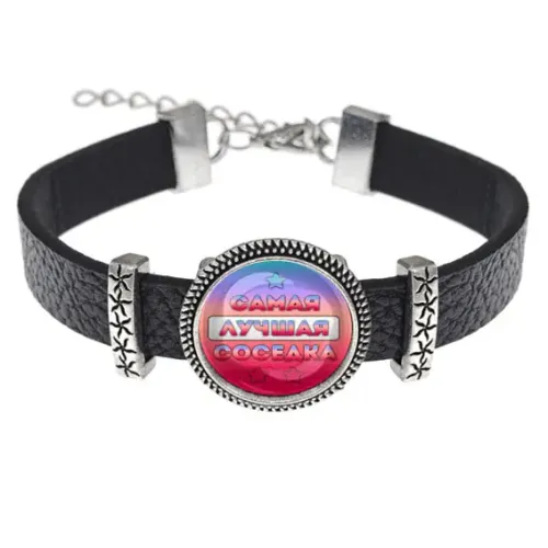 Кожаный браслет с изображением диаметром 18 мм, защищенным выпуклой стеклянной линзой, станет идеальным подарком для близкого человека. Этот стильный аксессуар выполнен из высококачественной кожи и металла, что гарантирует долговечность и комфорт при ношении. Регулируемый размер позволяет носить его на любой руке, подчеркивая индивидуальность владельца. Упакован в прозрачный пакет, что делает его отличным вариантом для подарка. Браслет символизирует дружбу и поддержку, что особенно ценится в отношениях между соседями или друзьями.