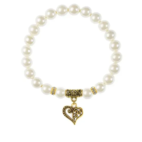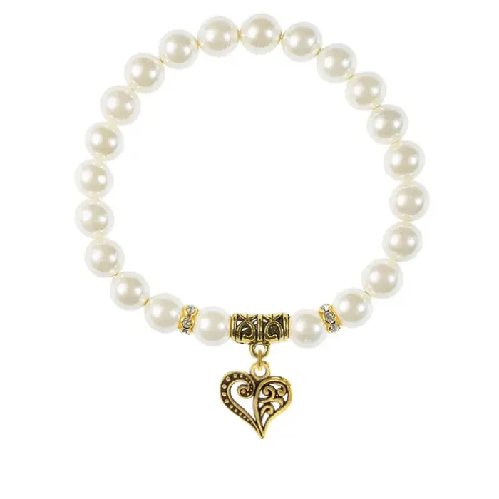 Браслет Сердце — это изысканный амулет, выполненный из высококачественного искусственного жемчуга майорки. Этот стильный аксессуар символизирует любовь и семейное счастье, а его подвеска-талисман из бижутерного сплава с покрытием под золото добавляет нотку элегантности.