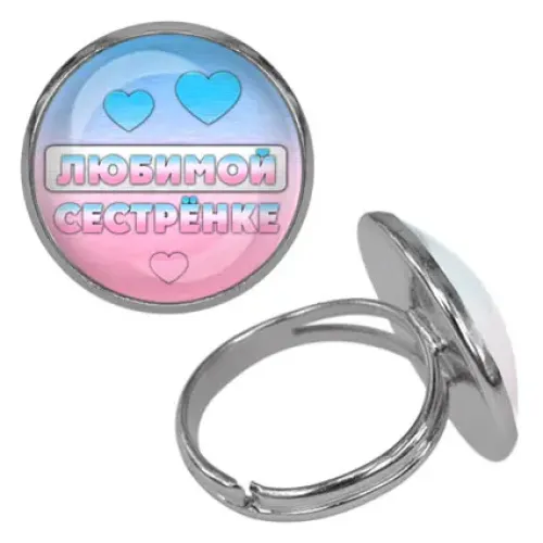 Это безразмерное кольцо с изображением диаметром 18 мм под выпуклой стеклянной линзой станет прекрасным подарком для любимой сестры. Изготовлено из бижутерного сплава с покрытием под серебро, оно сочетает в себе стиль и элегантность. Прозрачная упаковка добавляет завершенности, делая изделие готовым к дарению. Такой аксессуар не только украсит образ, но и символизирует крепкую связь между сестрами.