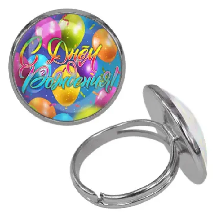 Это безразмерное кольцо с надписью "С Днём рождения!" станет замечательным подарком для близкого человека в особый день. Изготовлено из бижутерного сплава с покрытием под серебро и стекла, оно сочетает в себе стиль и оригинальность. Диаметр изображения составляет 18 мм, что делает его выразительным акцентом на любом пальце. Упаковано в прозрачный пакет, что добавляет удобства при дарении. Это украшение не только радует глаз, но и символизирует радость праздника.