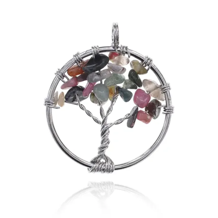Кулон Дерево жизни d.3см с нат.камнем Турмалин BJK203-13
