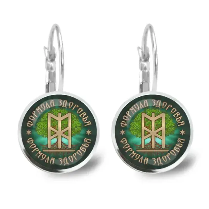 Серьги Формула здоровья SEAP-0406 — это бижутерный аксессуар с изображениями под выпуклыми стеклянными линзами.