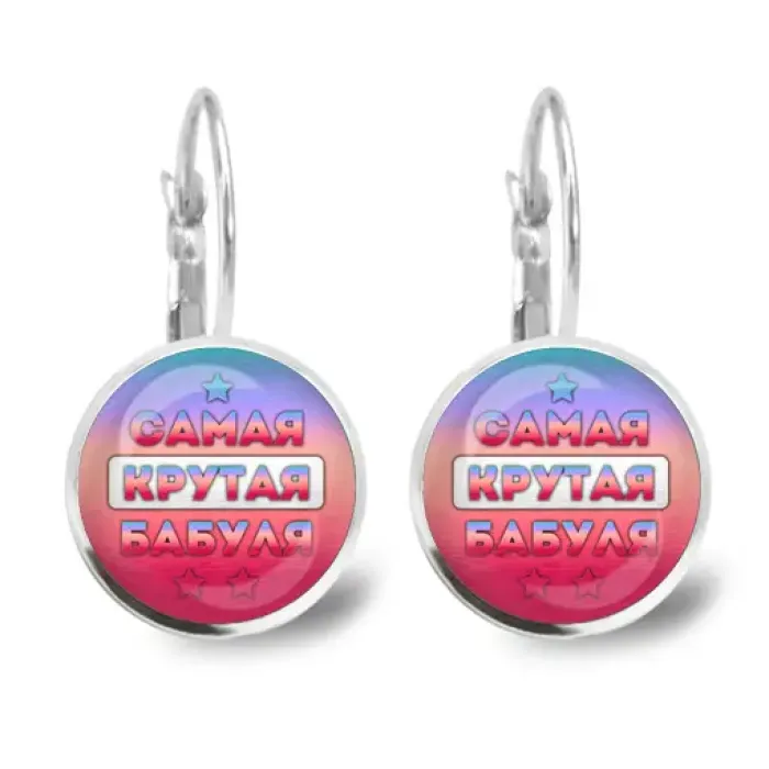 Серьги 'Самая крутая бабуля' — это стильный аксессуар, который станет отличным подарком для любимой бабушки. С диаметром 18 мм и выпуклыми стеклянными линзами, они привлекают внимание и подчеркивают индивидуальность. Особый тип замка — левербэк — обеспечивает надежную фиксацию и комфорт при ношении.