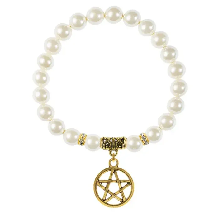 Браслет с подвеской в виде пентаграммы, изготовленный из искусственного жемчуга майорки.