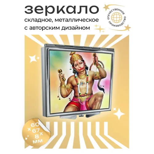 Складное зеркало с изображением Ханумана. Материал — металл и стекло.