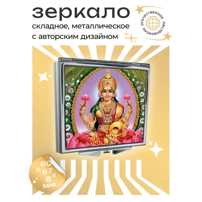 Складное зеркало квадратное с полноцветным изображением на металле.