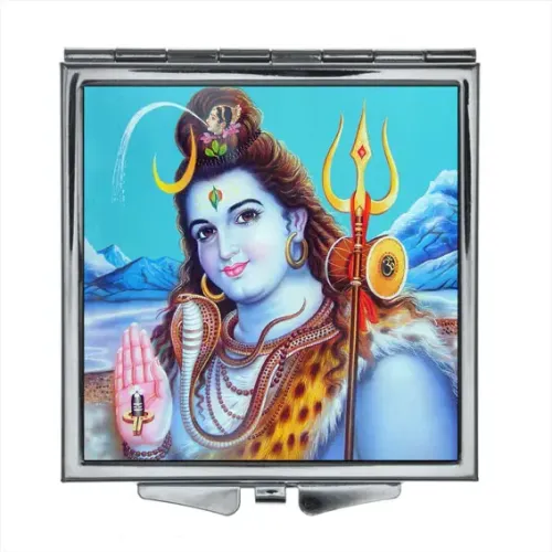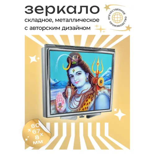 Складное зеркало квадратной формы с изображением божества Шивы. Материалы: металл и стекло.