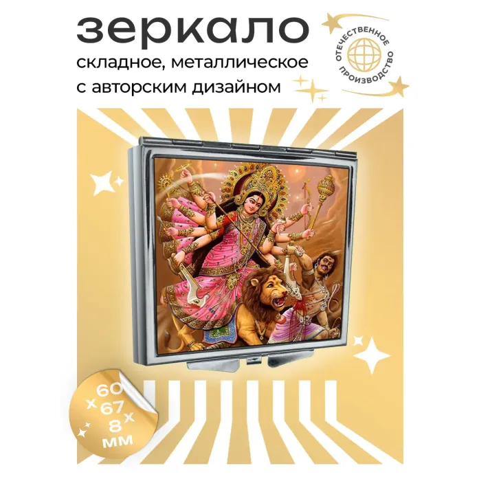 Складное зеркало квадратной формы с полноцветным изображением для использования в качестве аксессуара.
