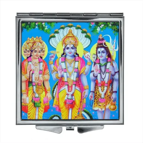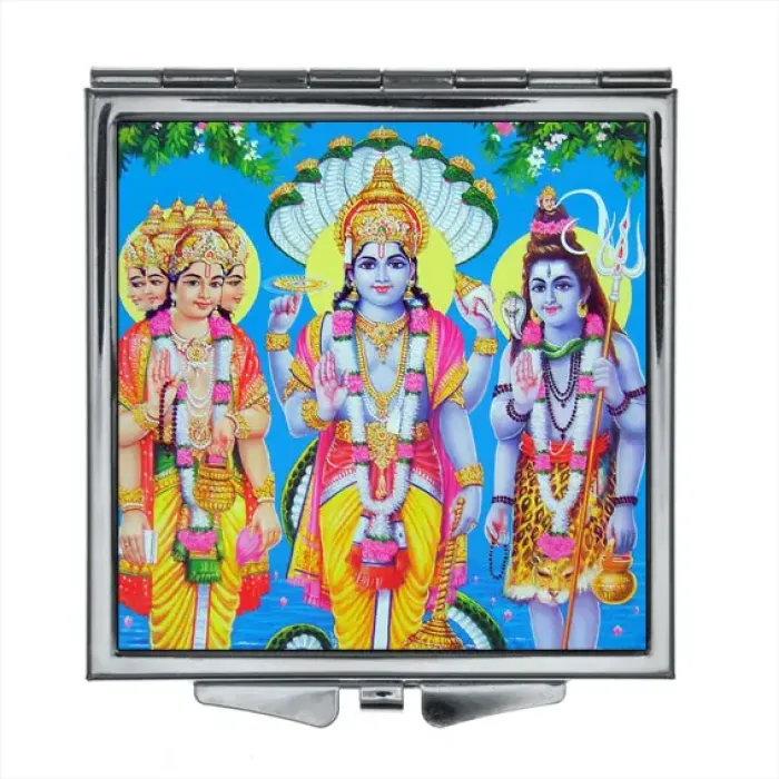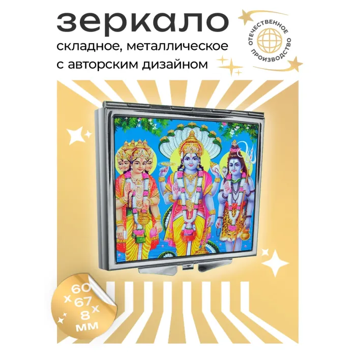 Складное зеркало квадратной формы с изображением Брахмы, Вишну и Шивы.