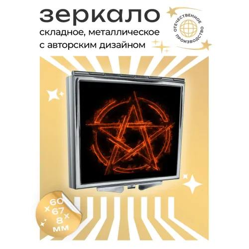 Складное квадратное зеркало с изображением огненной пентаграммы.