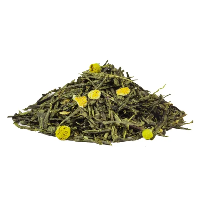 Мягкий зелёный чай сенча, дополненный цветами липы и ромашки с цедрой апельсина. Напиток обладает свежим, цитрусовым ароматом и мягким, цветочным вкусом, создавая лёгкое, расслабляющее впечатление.